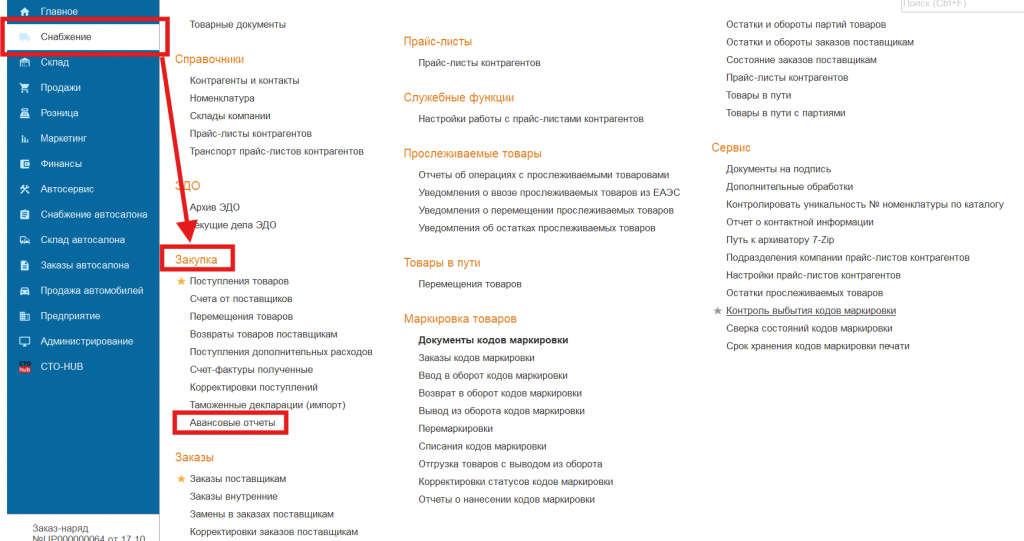 Рассмотрим самый частый пример использования данного документа в «АП-Сервис», в котором водитель-экспедитор приобрел деталь у поставщика, и привез ее в филиал. Находится он в подсистеме «Снабжение» в блоке «Закупки»