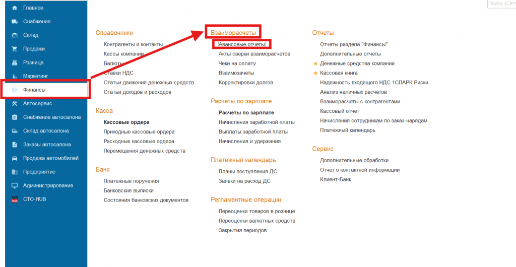 А также в подсистеме «Финансы» в блоке «Взаиморасчеты»