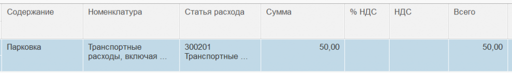 Далее заполняем остальные колонки, такие как «Содержание», «Номенклатура», «Статья Расходов» и «Сумму», как в данном примере