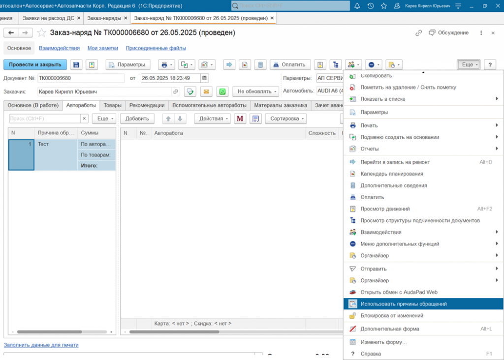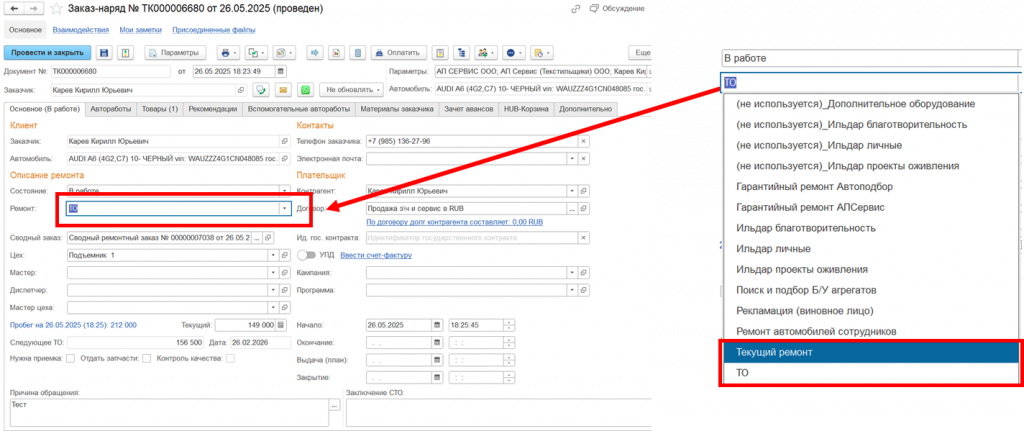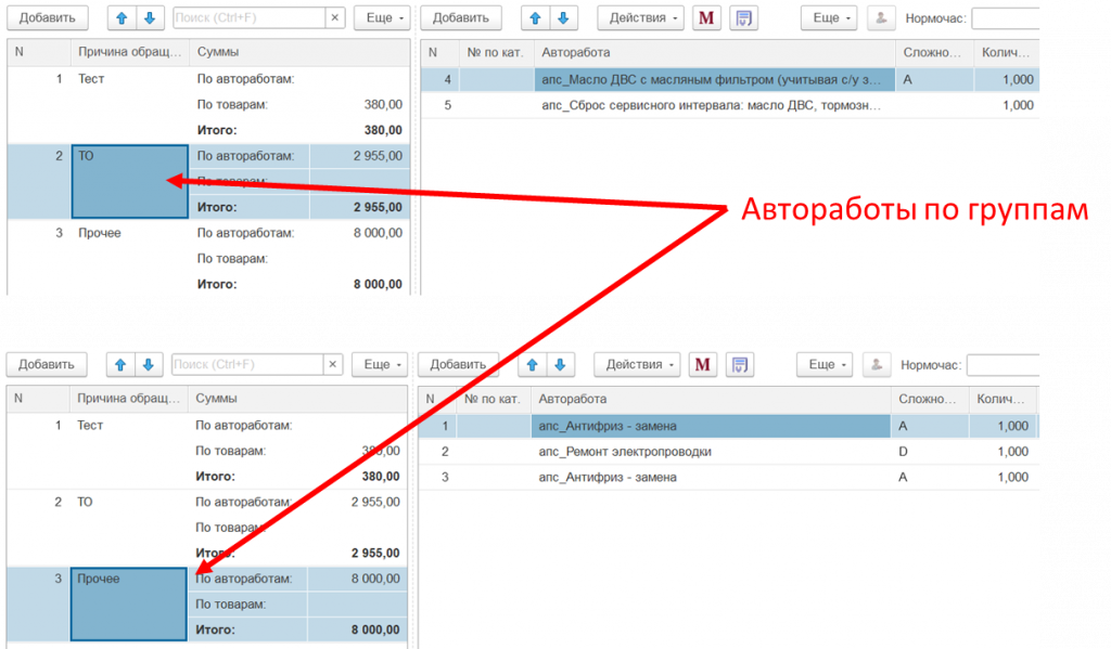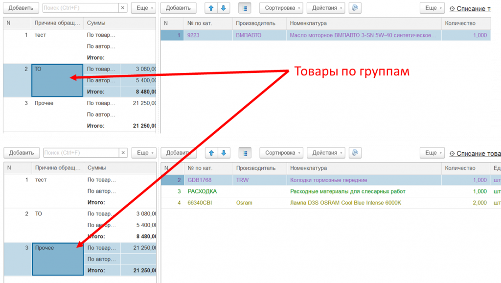 В группе «ТО» – только работы и товары для Масляного ТО.