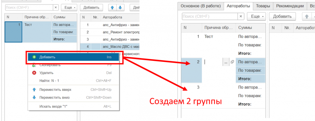 По итогу, у нас останутся 3 группы работ и 3 группы товаров.