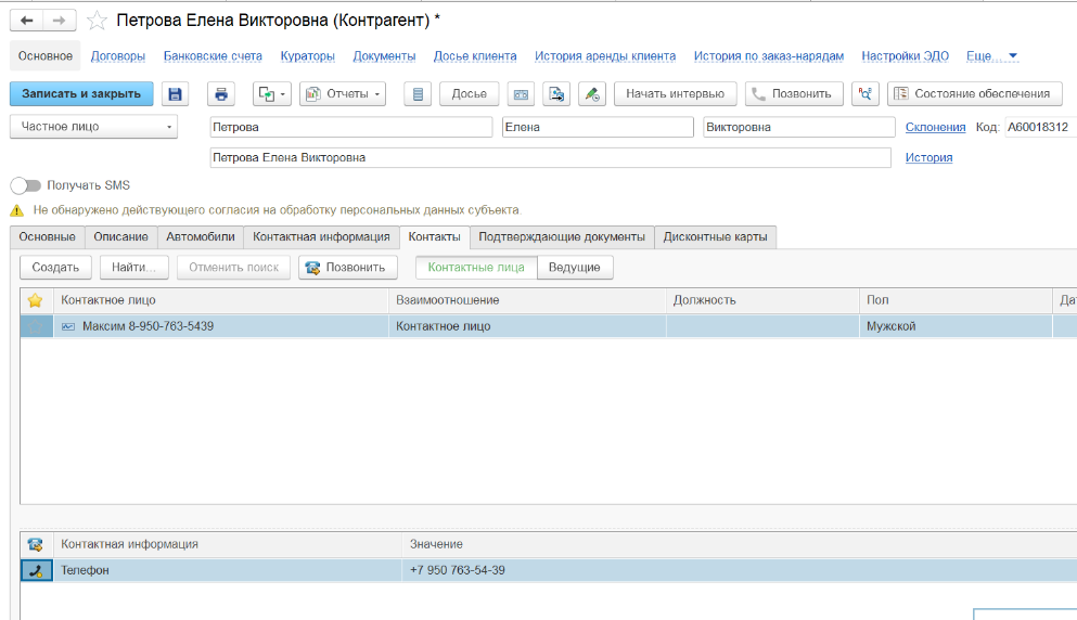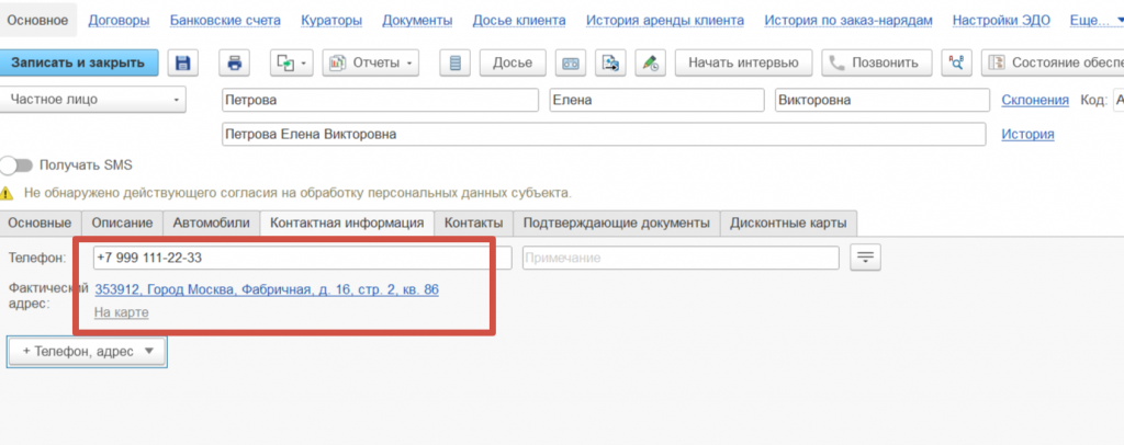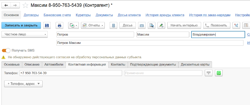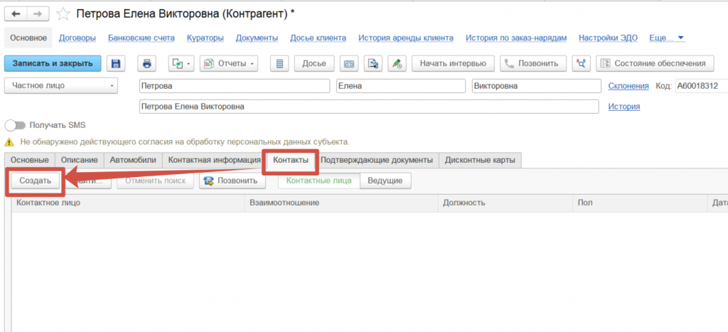 После внесениях данных контрагента необходимо получить «Согласие на обработку персональных данных». Как это делать описано тут…https://wiki.ap-sto.ru/2025/04/30/soglasie-na-obrabotku-personalnyh-dannyh/