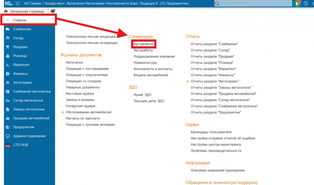 Перейти в справочник Вы можете либо из подсистемы «Главное» — «Справочники» — «Автомобили»