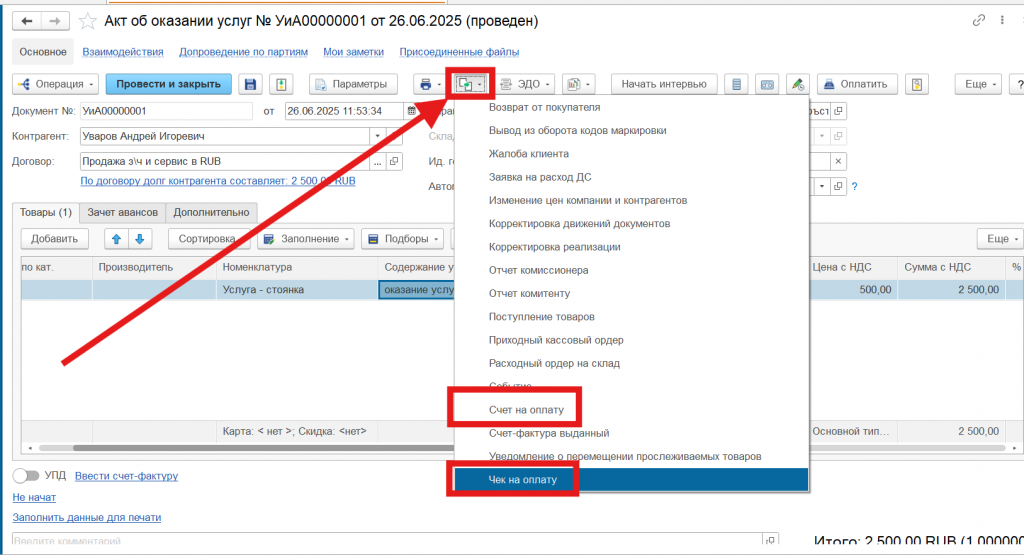 На основании данного документа можно ввести и платежные документы, такие как «Чек на оплату» и «Счет на оплату»