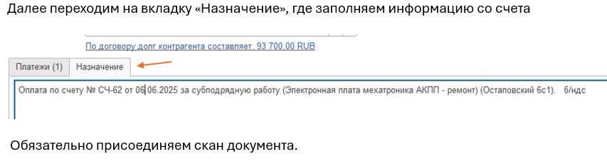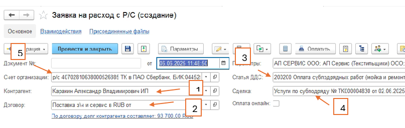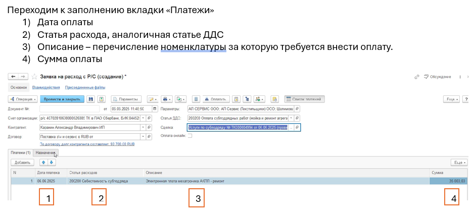 В данном примере будет рассмотрена заявка на оплату субподрядных работ.