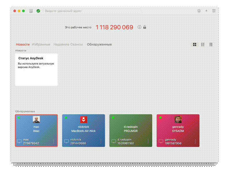 По окончанию настроек, окно AnyDesk должно принять такой вид: