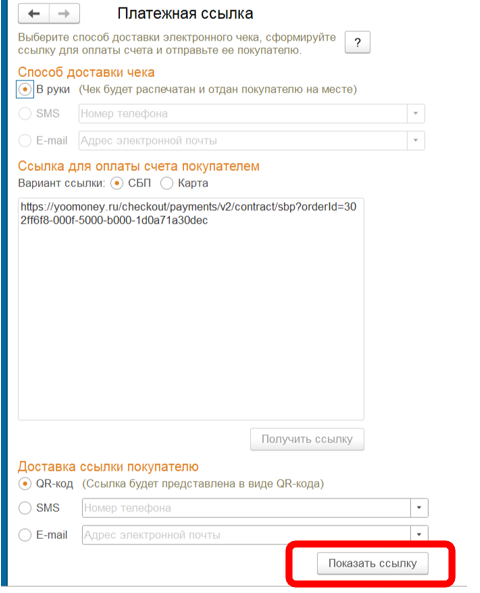 — формируем ссылку из счета, нажимаем «показать ссылку»