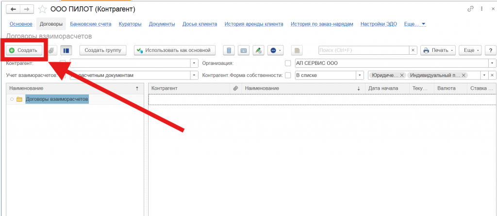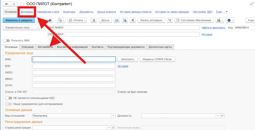 Для того, чтобы установить в заказ-наряд нормочас для юр.лиц, необходимо установить это условие в договоре с контрагентом. Для того чтобы его создать/изменить перейдите на страницу «договоры» в карточке контрагента