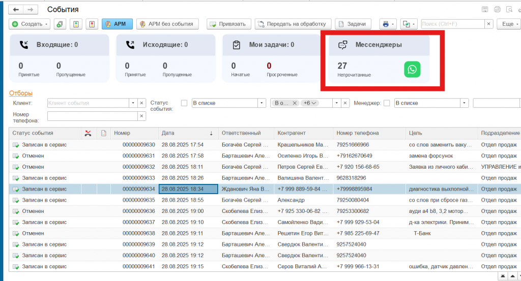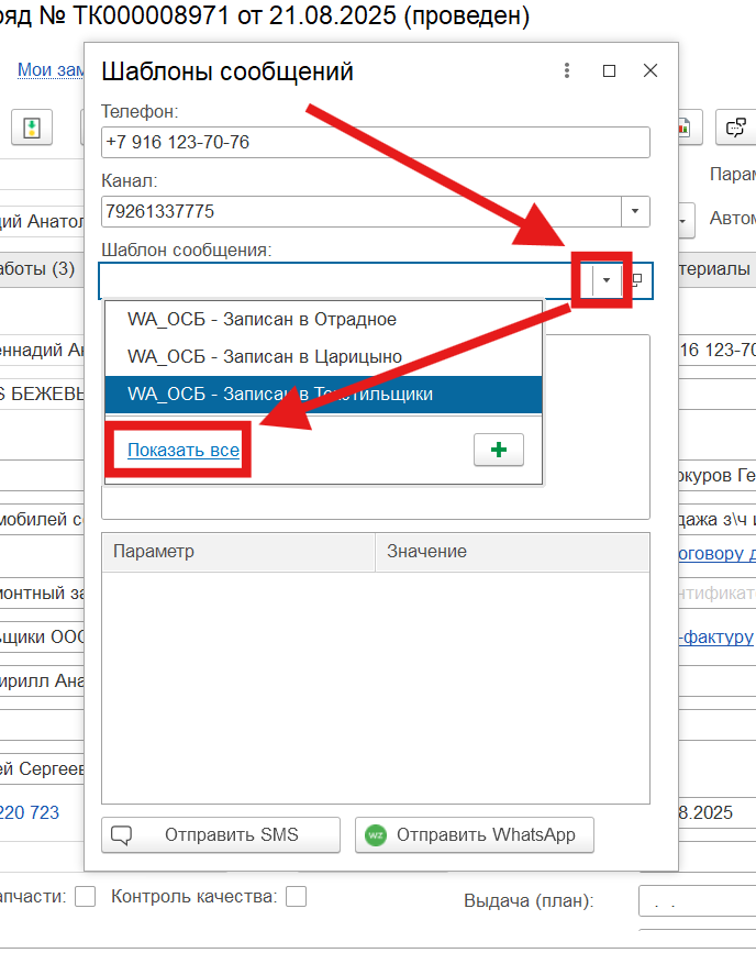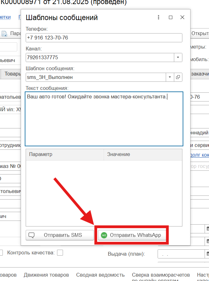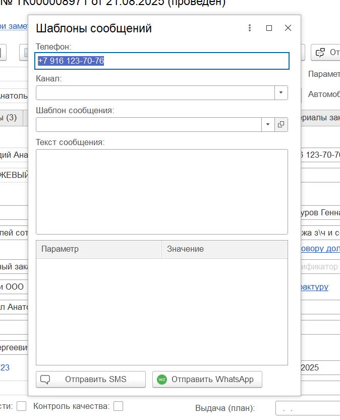 В АА6 интегрирован модуль, который позволяет пользователю отправлять сообщения клиентам непосредственно в 1С.