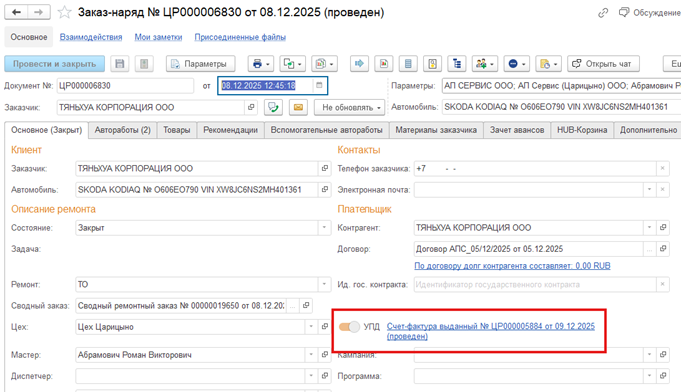 Подпись клиента в заказ-наряд-акт, УПД. И печать АП Сервис