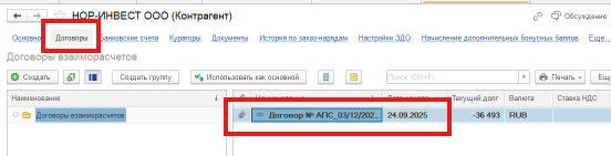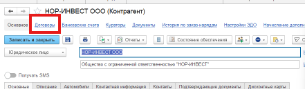 Для это проваливаетесь в карточку контрагента