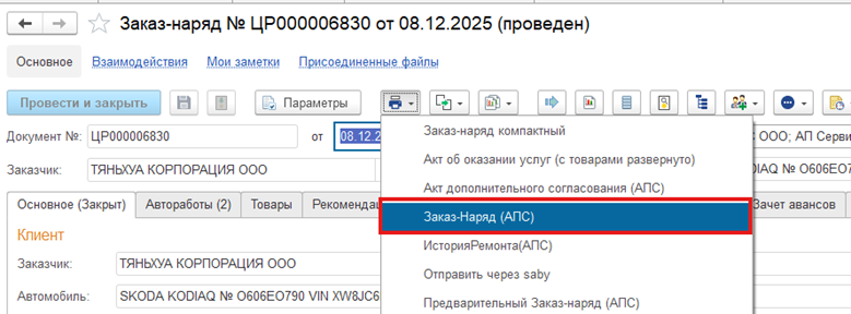 Подпись клиента в заказ-наряд-акт, УПД. И печать АП Сервис